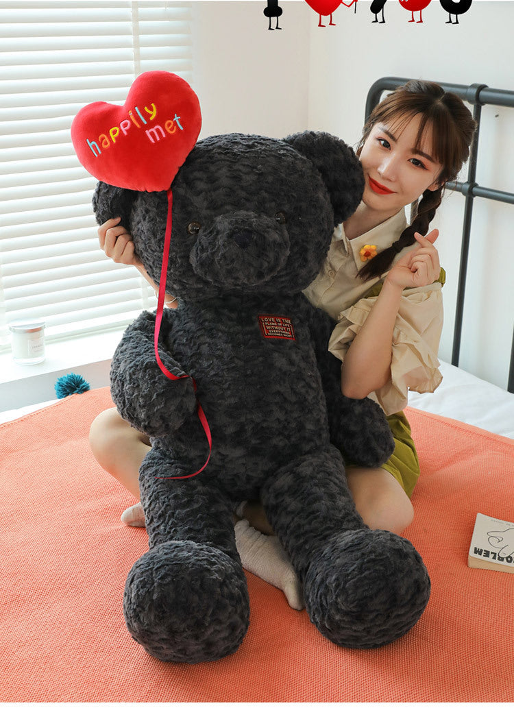 Happily Met Teddy Bear with Heart Balloon